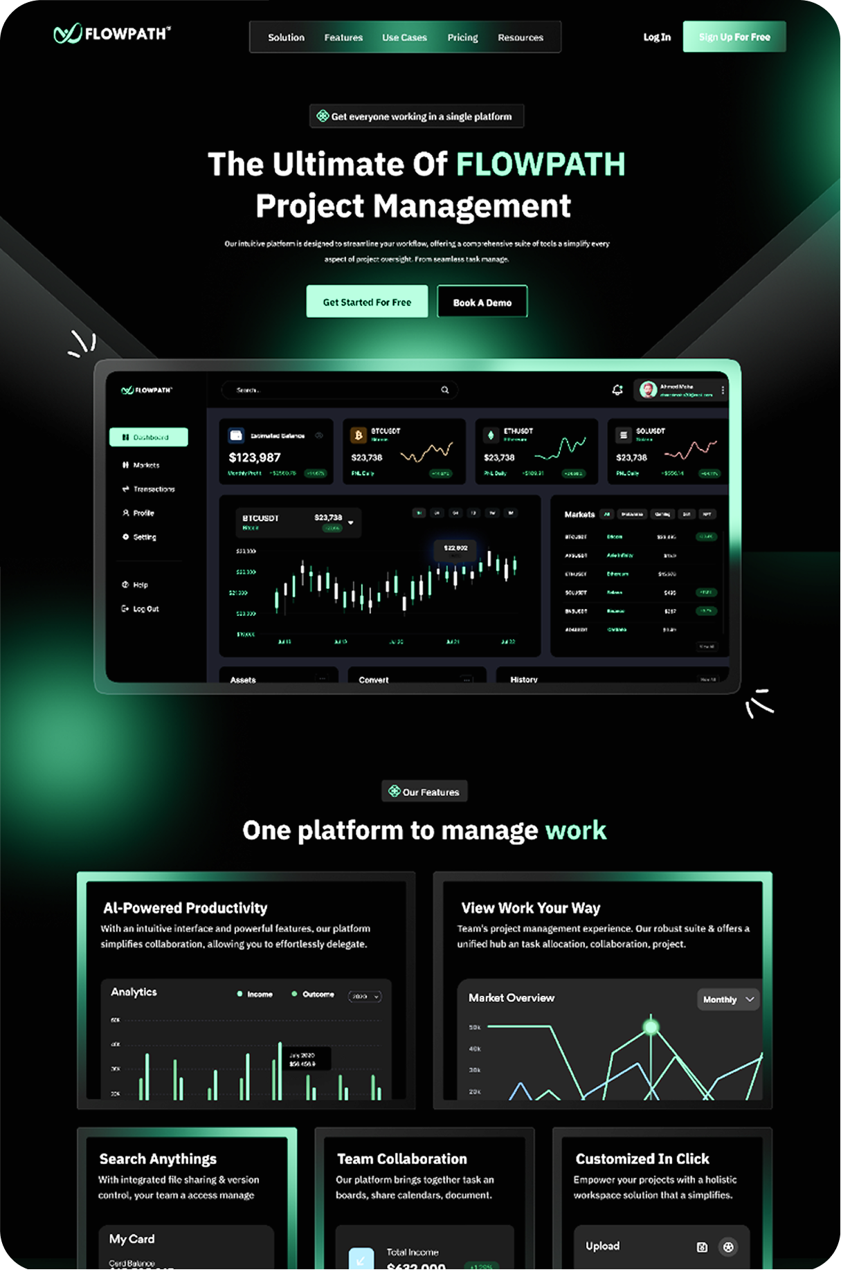 تصميم موقع FLOWPATH بعناية ليقدّم تجربة رقمية متكاملة لإدارة المشاريع، يتميز بتنسيق بصري أنيق، تنظيم واضح، وسهولة في التصفح، مما يعزز الإنتاجية ويوفّر...
